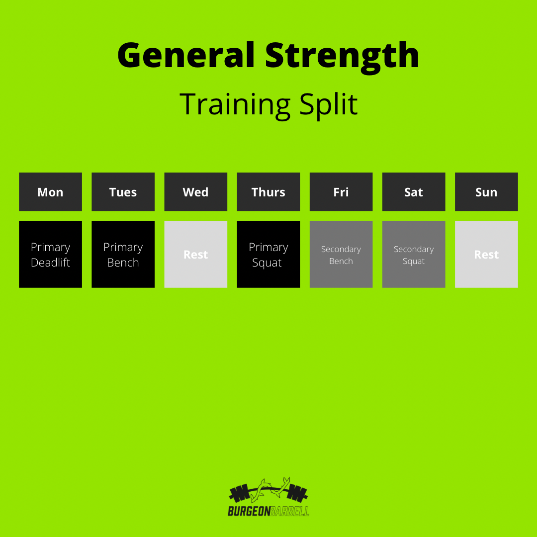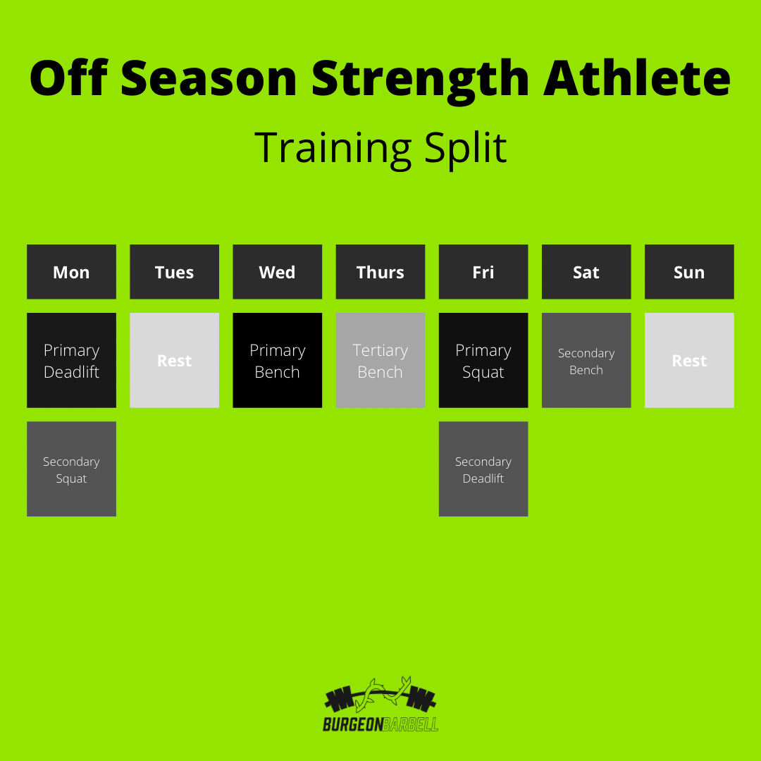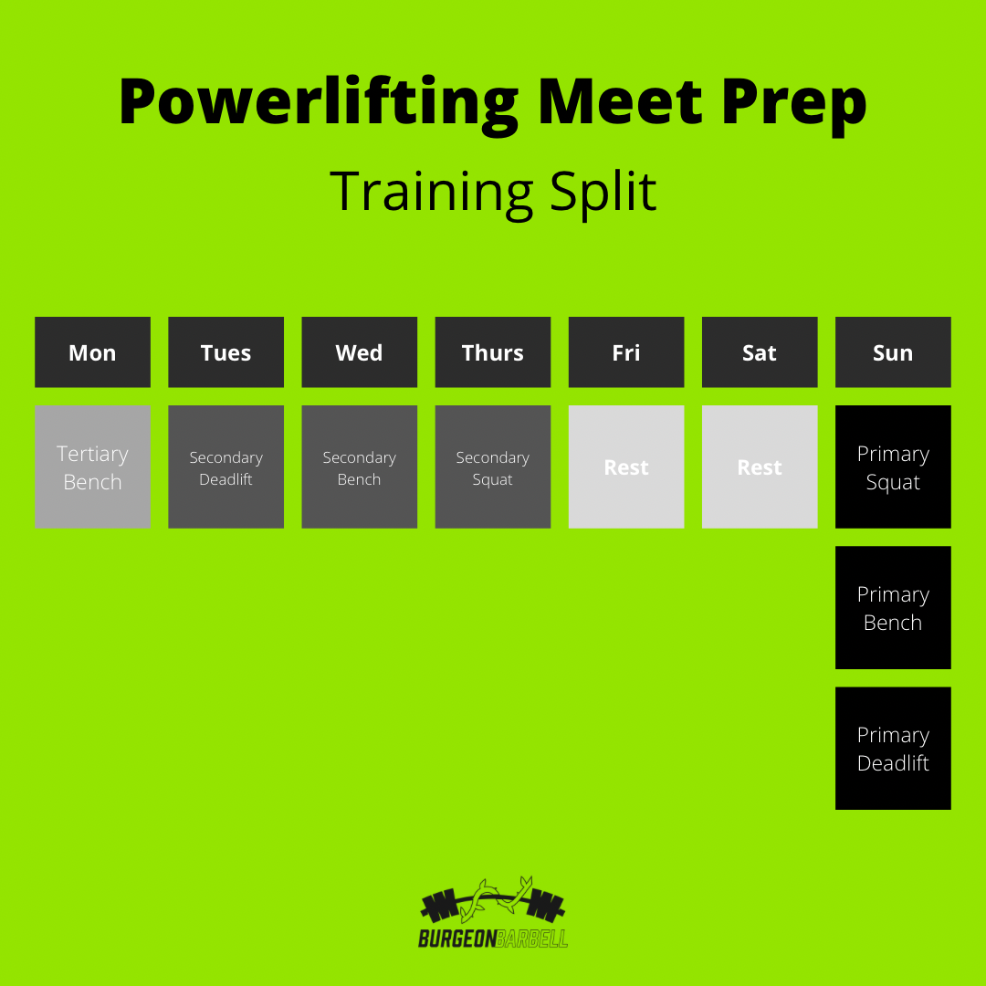 The athlete’s goals must also be considered in the organization of the training week. For example, a powerlifter might want to train deadlift and bench in a fatigued state in order to better predict meet day performance, whereas someone with general strength goals might want to feel fresh for each of their compound movements.