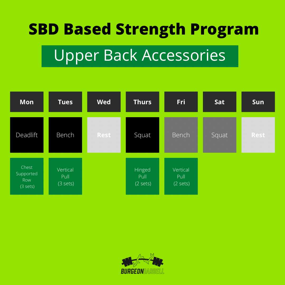 Training the muscles of the upper back for hypertrophy will improve performance in powerlifting; however, programming back exercises in a way that doesn’t interfere with recovery for the squat, bench, and deadlift is essential.